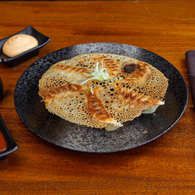 With rice & salad, 2pcs gyoza • Pick one: Chicken | Salmon | Karaage | Beef • Pick one: Vegetable Tempura | Spicy Tuna Roll | California Roll | Negi Hama Roll